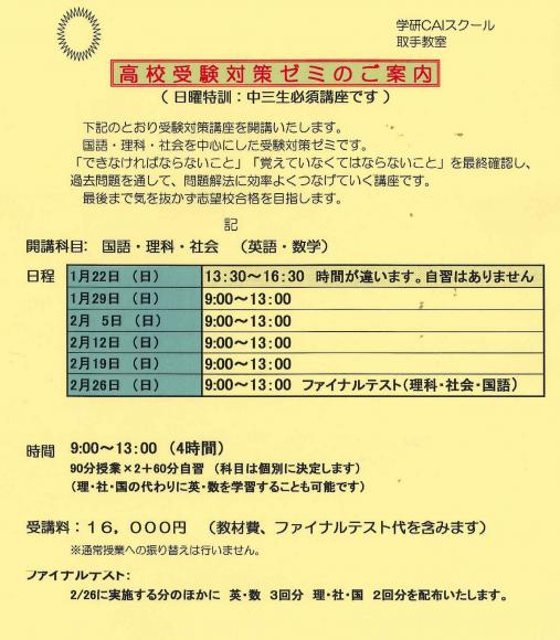 県立入試対策 日曜特訓=理社= ( 教室からのお知らせ )