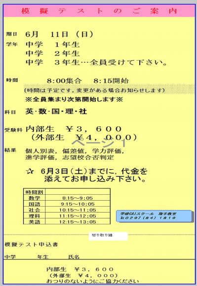 中学生対象:茨城全県模試開催のお知らせ ( 教室からのお知らせ )