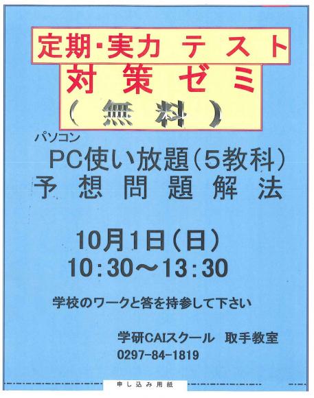 取手一中・取手二中・永山中:無料テスト対策 ( 教室からのお知らせ )