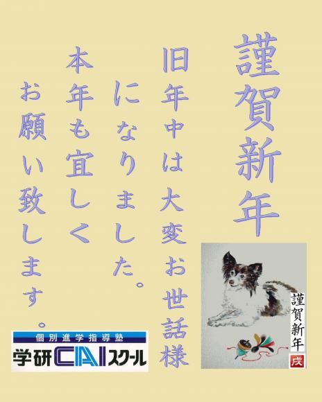 《 画像はクリックすると拡大します 》 旧年中は大変お世話様になりました。 取手教室の年末年始の予定は、 12月31日・1月1日〜2日休み 1月3日 冬期講習再開 です。 本年も、会員の皆様、地域にお住まいの方々のお役に 立てますようスタッフ一同益々励んで参ります。 本年も宜しくご指導の程、お願いいたします。 一生が勉強のつもりで取り組んで参ります。
