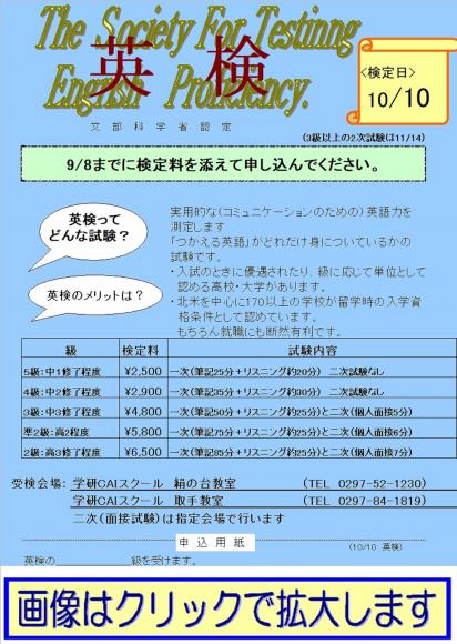 TOP›教室からのお知らせ›英語検定 開催のお知らせ