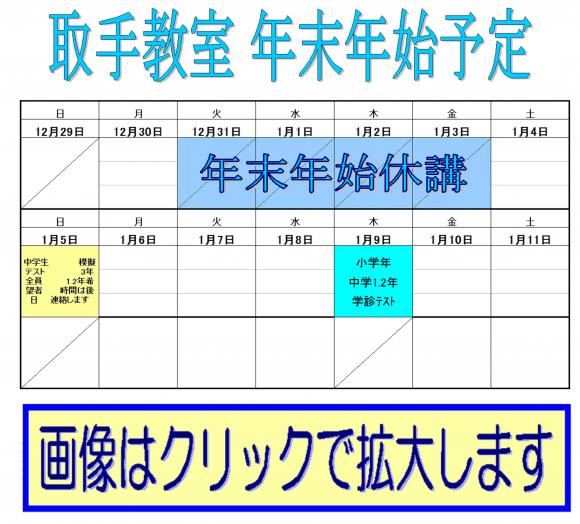 TOP›教室からのお知らせ›学研CAI取手教室・年末年始のお知らせ