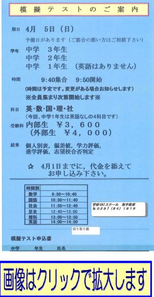 取手の中学生:模擬テスト開催のお知らせ ( 教室からのお知らせ )