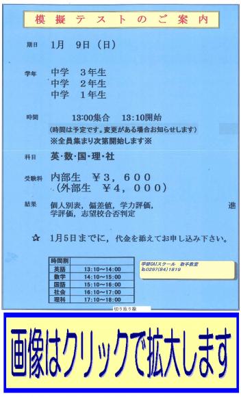 『取手の中学生:模擬テスト開催のお知らせ』