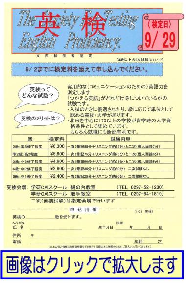2024年度第2回 英語検定開催:準会場取手 ( 教室からのお知らせ )