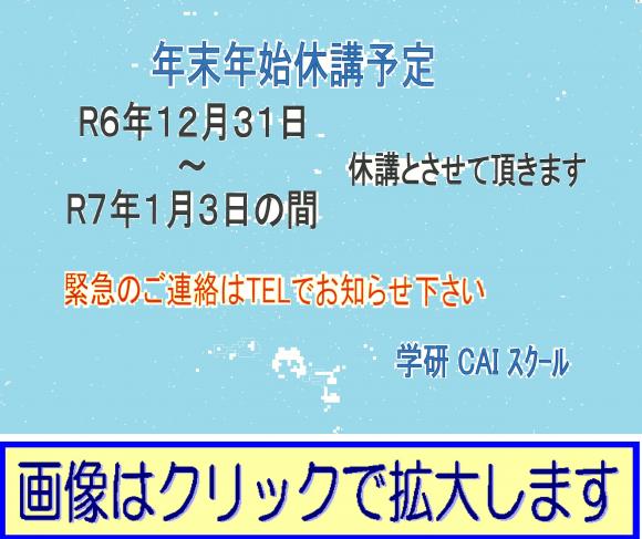 2024年12月30日 月曜日 年末年始の休講予定のお知らせ ( 教室からのお知らせ )