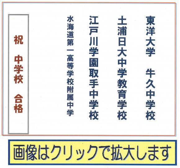 TOP›合格実績›平成6年度 中学:大学合格 学研取手教室