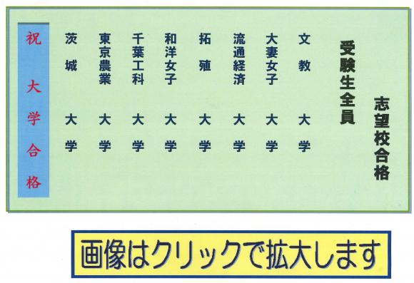 2025年03月15日 土曜日 平成6年度 中学:大学合格 学研取手教室 ( 合格実績 )