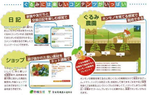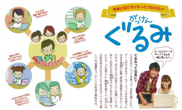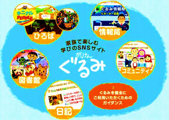《 画像はクリックすると拡大します。》 家族で楽しむ ソ−シャル ネットワ−ク サイト(S.N.S.) がっけん ‘ぐるみ’誕生 この 『がっけん ぐるみ』 は 公益共有サイトで、 その内容、機能は、 図書館 家族・友人との伝言 各種情報 日記・ショップ デジタル教材 等、多岐にわたった 機能を持つサイトです。 このサイトには 一般の方(非会員さん)も 簡単な登録で 使用できます。 学研のコンテンツを 皆さんも体験してみて 下さい。