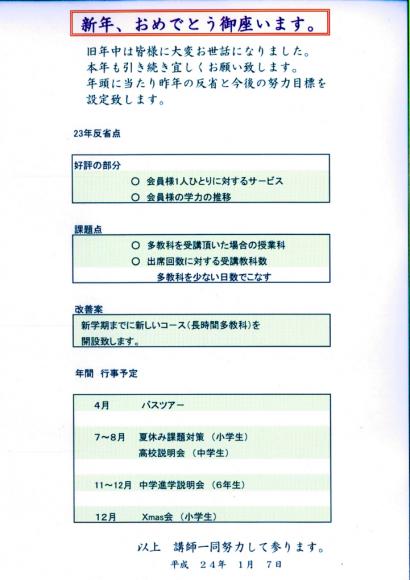 2012年01月11日 水曜日 年頭にあたって     ( スタッフの日記 )