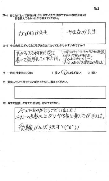 TOP›生徒・保護者様アンケート›23年卒業生アンケ-ト