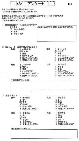 2012年07月01日 日曜日 23年卒業生アンケ-ト     ( 生徒・保護者様アンケート )