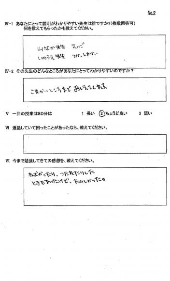 TOP生徒・保護者様アンケート23年卒業生アンケ-ト