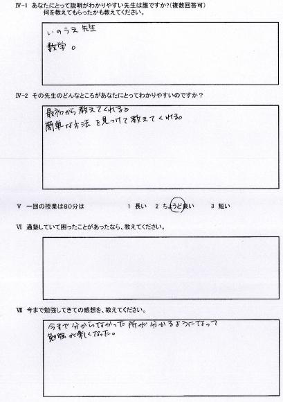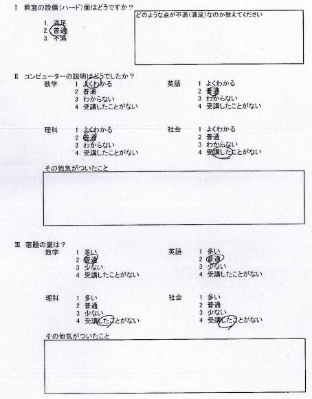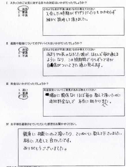 2013年04月27日 土曜日 卒業生アンケ-ト(5) 24年度 ( 生徒・保護者様アンケート ) |