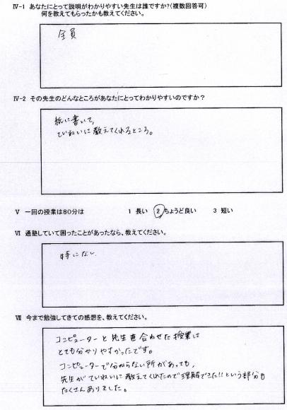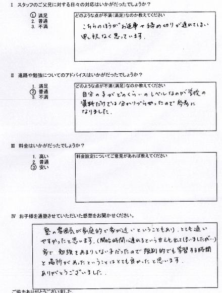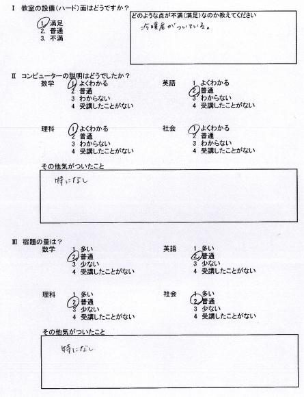 2013年04月27日 土曜日 卒業生アンケ-ト(6) 24年度 ( 生徒・保護者様アンケート ) |