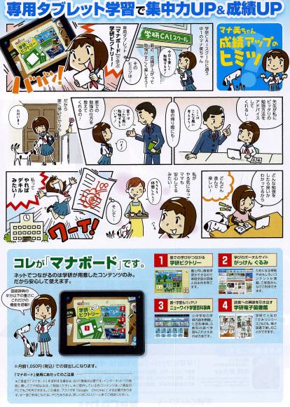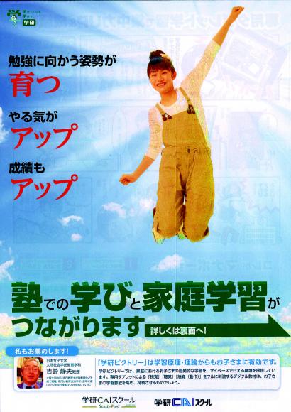 《 画像ハクリックすると拡大します 》 ==家庭学習支援サ-ビス開始== 学研CAIスク-ルで学習してている 教科書準拠の授業用コンテンツが インタ-ネットを使いご家庭に配信できるように なりました。 ご家庭で学校で勉強するのと同等の勉強を 始めてみませんか? 学習科目 小学生 算数・国語・理科・社会・Jr英語 中学生 数学・英語・理科・社会・国語 ○ 予習、復習の充実に きちんとした説明が受けられるから 1人ではやりづらかっつた予習、復習が 学校で習うのと同じようにご家庭でも 学習できます。 ○ 低学年のお子さんに 重要要項目を楽しく説明するから お子様が嫌がらずに勉強してくれます。 お母さんと一緒に勉強してください。 ○ 高学年、受験生に ハイレベルな問題、難問の解説も充実しているから 1人で徹底的に勉強できます。 ○ 学校を休んでしまった方 学習教科、学年は全ての教科、 学年がそろっているから 学年をさかのぼっての学習も 可能。 詳細は、お電話でお問い合わせ下さい。 TEL 0297-84-1819