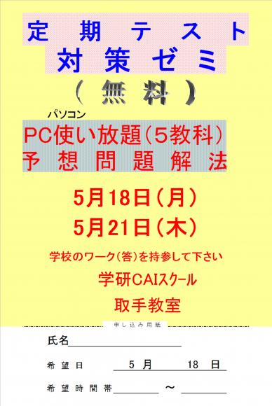 2015年05月22日 金曜日 無料 定期テスト対策 ( 教室からのお知らせ )