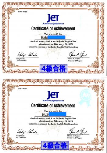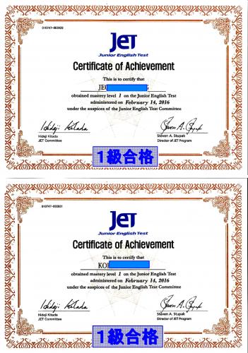 JET検定 合格おめでとう 頑張りました